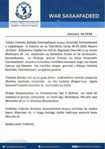 War ka soo baxay Taliska Ciidanka Booliska Soomaaliyeed ayaa lagu sheegay in shalay xaafad ka tirsan Degmada Dayniile ay ka dhaceen rabshado la xiriira banaanbax ay sameeyeen kooxo dhalinyaro ah oo abaabulan.