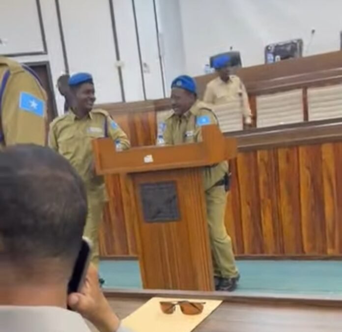 Taliyaha qeybta guud ee booliska gobolka Banaadir, Macallin Mahdi, iyo saraakiil kale ayaa lagu arkay gudaha xarunta Baarlamaanka.