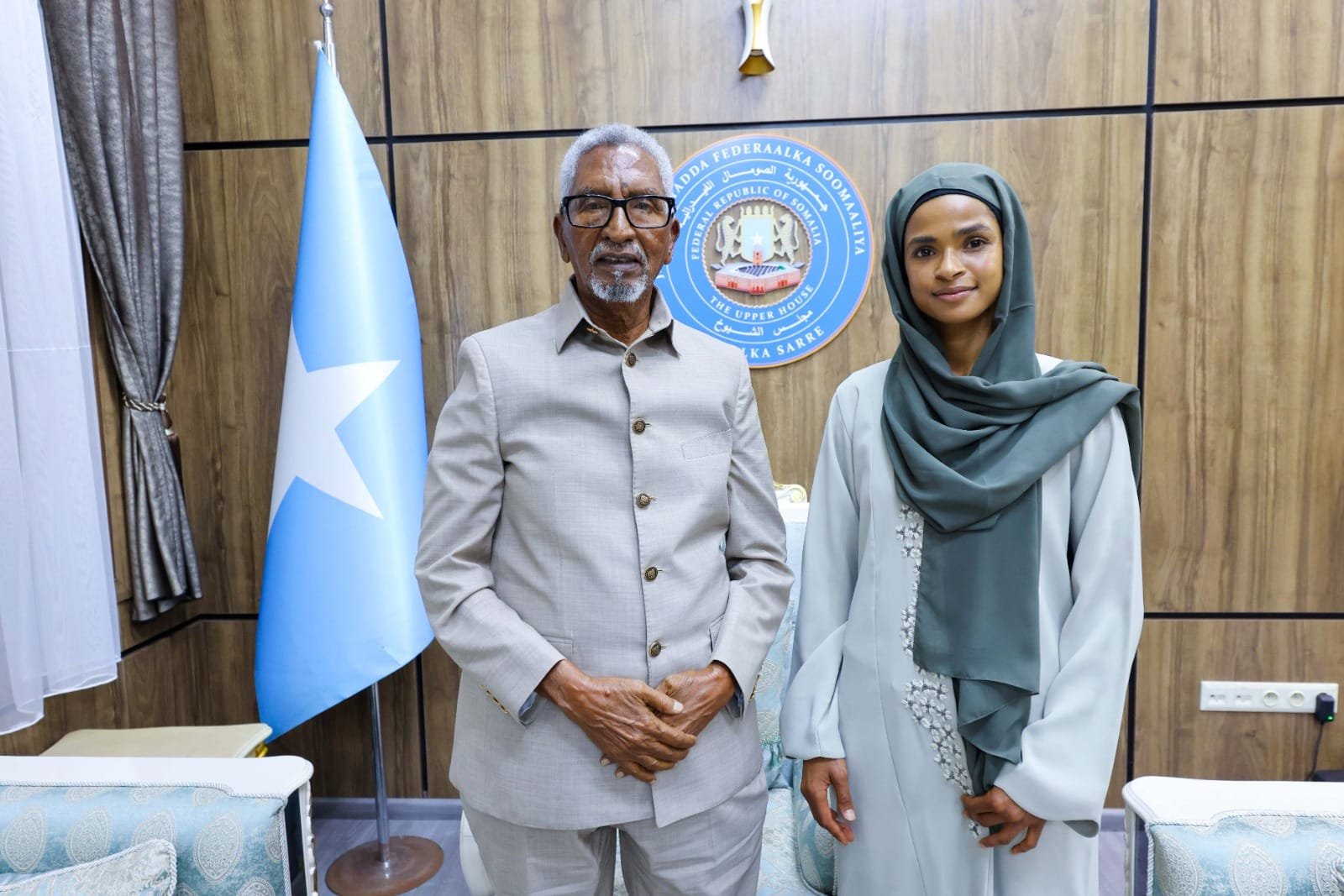 Guddoomiyaha aqalka sare ee Baarlamaanka Jamhuuriyadda Federaalka Soomaaliya mudane Cabdi Xaashi Cabdullaahi oo uu wehelliyo Guddoomiye ku xigeenka 2-aad mudane Cabdullaahi Cali Xersi Timacadde ayaa maanta xafiiskiisa ku qaabilay xiddigta Qaran Marwo Ramla Cali.