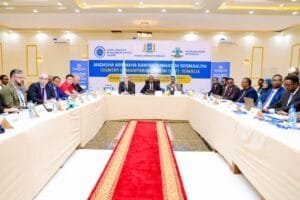 Guddoomiyaha Hay’adda Maareynta Musiibooyinka (SoDMA), Maxamuud Macallin Cabdulle, ayaa maanta magaalada Gaalkacyo ee Dowlad Gobolleedka Galmudug ka daah-furay Shirka Madasha Arrimaha Bani’aadannimada Soomaaliya (CHF -2025) oo looga hadlayo xoojinta iskaashiga dhinacyada ka shaqeeya gargaarka, raadinta xal waara oo ku aaddan la qabsiga isbeddelka cimilada iyo xoojinta hannaanka gurmadka deg-degga ah.