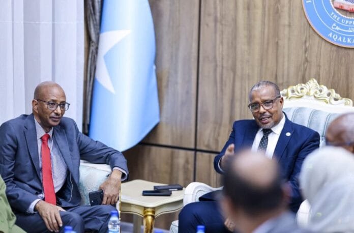 Guddoomiye ku xigeenka labaad ee Aqalka Sare ee Baarlamaanka JFS, Mudane Cabdullaahi Cali Xersi Timacadde, ayaa maanta xafiiskiisa ku qaabilay Guddoomiyaha Golaha Wakiillada Dowlad Goboleedka Waqooyi Bari, Mudane Dr. Aadan Cabdullaahi Aw-xasan, iyo xubno kale oo la socday.