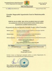 Hoggaamiyaha KMG koonfur Galbeed oo magacaabay Agaasimaha Guud Madaxtooyada.