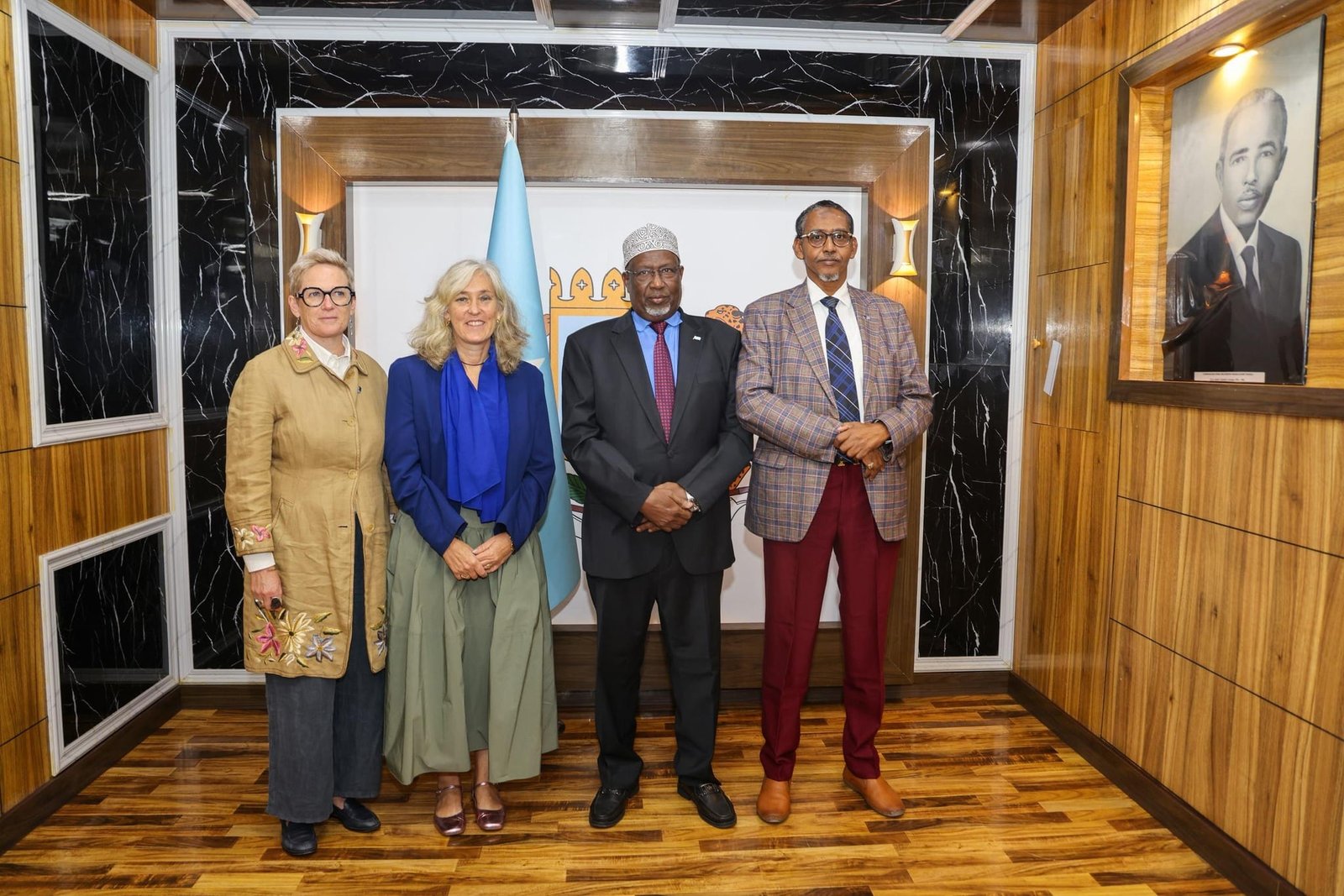 Kusimaha Madaxweynaha Jamhuuriyadda ahna Guddoomiyaha Golaha Shacabka ee Baarlamaanka Federaalka Soomaaliya Mudane Sheekh Aadan Maxamed Nuur (Madoobe) ayaa xafiiskiisa kulan kula qaatay safiirka cusub ee Midowga Yurub u qaabilsan Soomaaliya Francesca Di Mauro iyo kuxigeenkeeda Karin Gatt-Rutter.