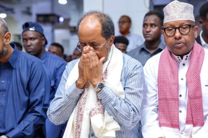 Madaxweynaha ayaa Khudbad uu ka jeediyay Masjidka kaga hadlay xaaladda guud ee dalka, dadaallada diblumaasiyadeed iyo sharci ee ay Dowladdu ku wajahayso faro-gelinta shisheeye iyo tallaabooyinka gurracan ee ka dhanka ah midnimada iyo madaxbannaanida Soomaaliya.