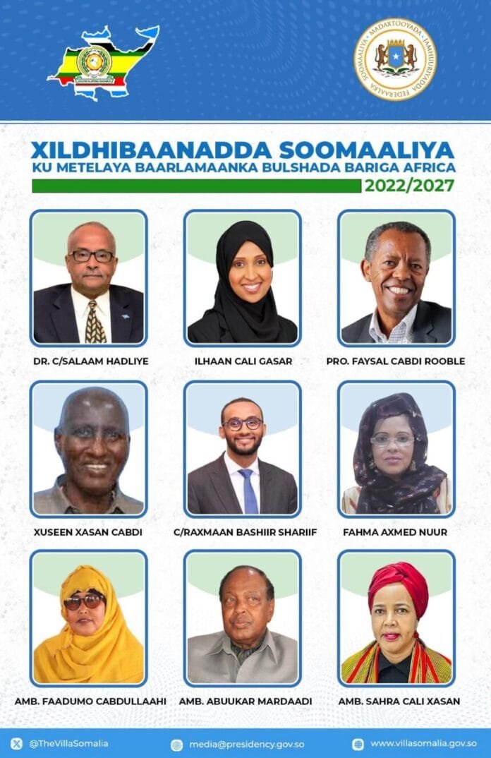 Madaxweynaha Jamhuuriyadda Federaalka Soomaaliya Mudane Xasan Sheekh Maxamuud ayaa hambalyo u diray Xildhibaannada Soomaaliyeed ee labada aqal ee Baarlamaanka Federaalka Soomaaliya maanta u doorteen in ay Soomaaliya ku matalaan Baarlamaanka Bariga Afrika.