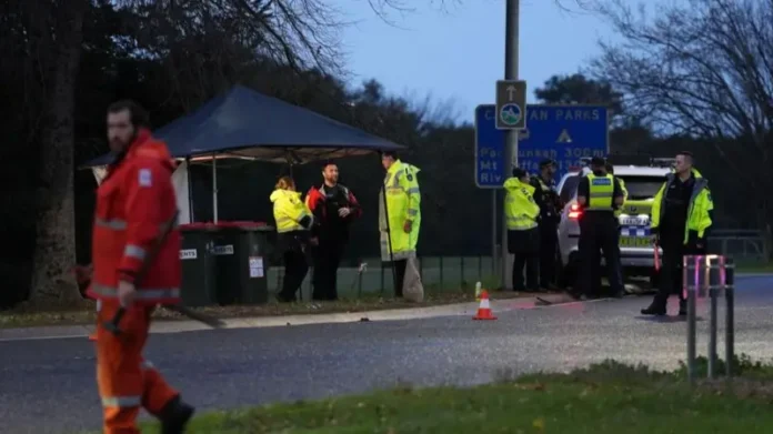 The suspect escaped into the bush on foot, police say. They have urged locals to stay indoors while a large area remains cordoned off during the manhunt.