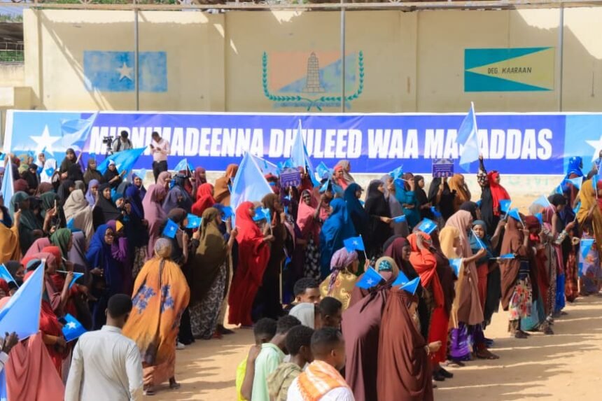 Waxa saakay degmada Kaaraan ee gobolka Banaadir ka socda mudaharaad lagu taageerayo midnimada jamhuuriyadda Federaalka Soomaaliya,mudaharaakan ayaa looga soo horjeedaa xadgudubka Israa’iil kula kacday midnimada Soomaaliya.