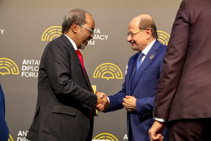 Antaaliya, Abriil 17, 2026; Madaxweynaha Jamhuuriyadda Federaalka Soomaaliya, Mudane Xasan Sheekh Maxamuud ayaa ka qeyb galay Madasha Hoggaamiyeyaasha Diblumaasiyadda Antaaliya ee dalka Turkiga, taasi oo ka qayb galayaan madax dowladeed, diblumaasiyiin iyo hoggaamiyeyaal siyaasadeed oo ka socda caalamka, si ay u wadaagaan aragtiyo togan oo ku aadan xaaladda caalamka iyo doorka diblomaasiyadda casriga ah ee xal u helidda caqabadaha caalamiga ah.