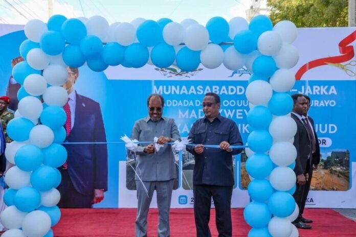Madaxweynaha Jamhuuriyadda Federaalka Soomaaliya, Mudane Xasan Sheekh Maxamuud ayaa maanta si rasmi ah xarigga uga jaray, Waddada laamiga ah ee isku xirta Isgoysyada Dabka iyo Bakaaraha ee magaalada Muqdisho, taasi oo uu hirgaliyay maamulka Gobolka Benaadir.