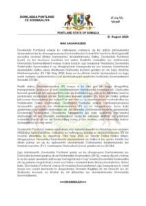 Dhanka kale, Puntland ayaa warsaxaafadeedkeeda ku cambaareysay Madaxweynaha Soomaaliya, iyadoo ku eedeysay inuu ku mashquulsan yahay kala qaybin siyaasadeed iyo faragelin ku saabsan hay’adaha dastuuriga ah iyo ururrada siyaasadeed. Puntland waxay ku celisay walaaca ay ka qabto hubanti la’aanta siyaasadeed ee dalka, waxayna ku baaqday in doorashooyinka dalka lagu qabto heshiis loo dhan yahay.