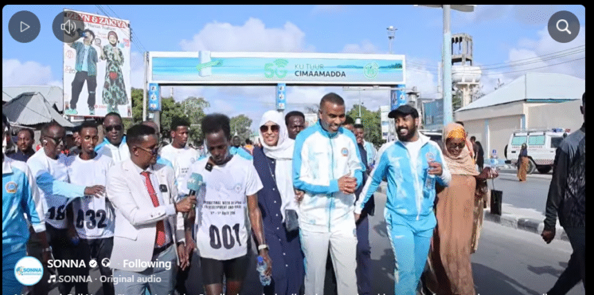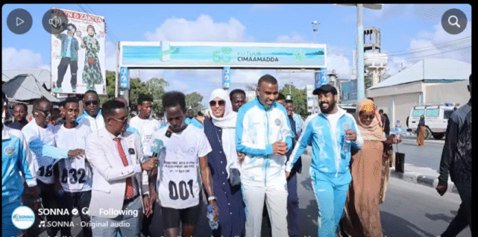 Guddoomiyaha Xiriirka Soomaaliyeed ee Ciyaaraha Fudud Dr. Khadiija Maxamed Daahir ayaa tiri “Tartanka orodka Marathon-ka waa tartan furan, waxaana ka qeyb galaya 300 dhallinyaro ah oo ka kala yimid gobollada Dalka.