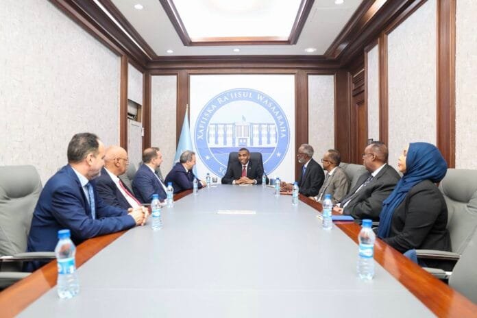 Ra’iisul Wasaaraha Xukuumadda Jamhuuriyadda Federaalka Soomaaliya, Mudane Xamsa Cabdi Barre, ayaa maanta qaabilay wafdi sare oo ka socda ururka Jaamacadda Carabta, kuwaas oo dalka u yimid hirgalinta mashruuc weyn oo lagu taageerayo Manhajka waxbarashada dalka iyo horumarinta Afka Carabiga.
