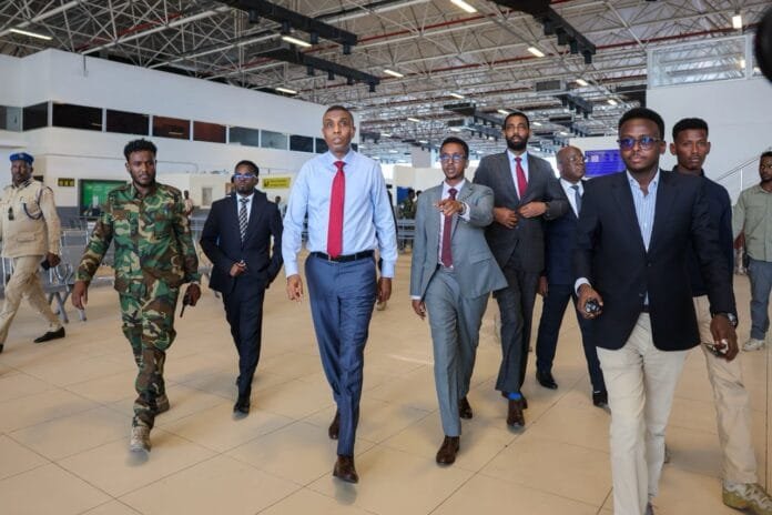 Ra’iisul wasaaraha xukuumadda Jamhuuriyadda Federaalka Soomaaliya mudane Xamsa Cabdi Barre oo ka duulaya dhaqangalka amarkii uu dhawaan bixiyey ee hagaajinta adeegyada garoonka diyaaradaha Aaden Cadde ayaa maanta mar kale kormeeray qeybaha garoonka iyo gaar ahaan goobihii uu amray in la dayactiro.