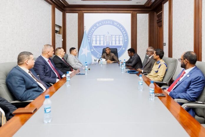 Ra’iisul Wasaaraha Xukuumadda Jamhuuriyadda Federaalka Soomaaliya mudane Xamsa Cabdi Barre ayaa maanta xafiiskiisa ku qaabilay wafdi ka socda Dowladda Ciraaq, kuwaas oo dalka u yimid sidii loo xoojin lahaa iskaashiga iyo xiriirka labada dal ee walaalaha ah.