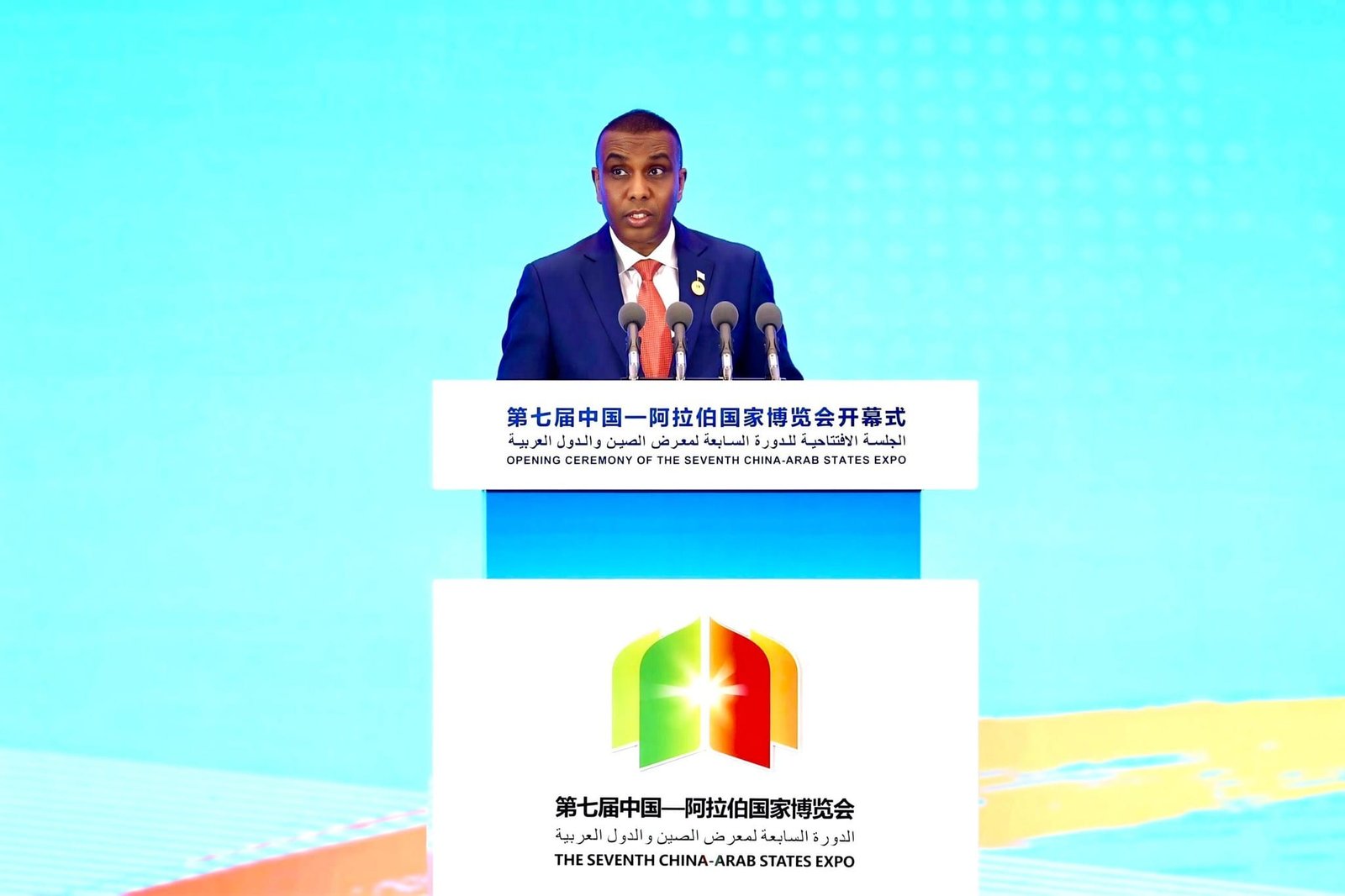 Ra’iisul Wasaaraha Xukuumadda Jamhuuriyadda Federaalka Soomaaliya, Mudane Xamsa Cabdi Barre, oo khudbad taariikhi ah ka jeediyay furitaanka Bandhigga 7aad ee Carabta iyo Shiinaha (China-Arab States Expo) ee lagu qabtay magaalada Yinchuan, ayaa soo bandhigay horumarka iyo fursadaha dalkeenna ka jira.