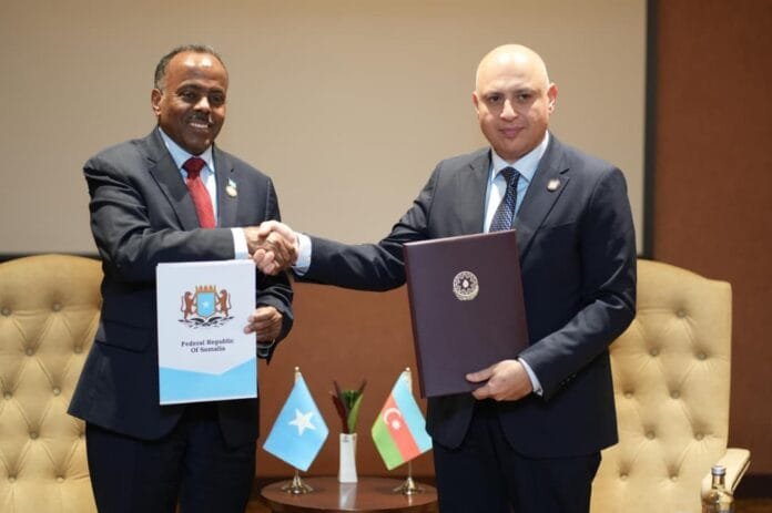 Heshiiskaan waxaa si rasmi ah u kala saxiixday Wasiiru-Dowlaha Wasaaradda Arrimaha Dibadda Soomaaliya, Mudane Cali Maxamed Cumar (Balcad) iyo Wasiir ku-xigeenka Arrimaha Dibadda dalka Azerbaijan, Mudane, Samir Sharifov, xilli ay ka qeybgalayeen shir caalami ah oo ka socday Kampala.