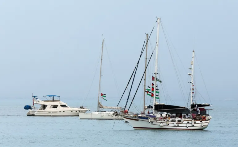 The vessels arrived in Sidi Bou Said, Tunisia, on Sunday, the last planned stop on their journey before continuing on to Gaza on Wednesday.