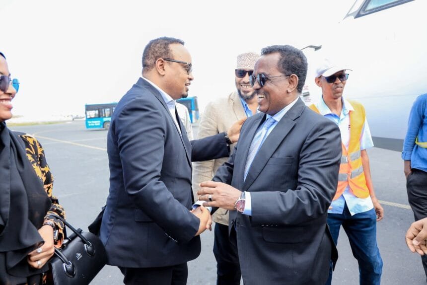 Wasiirka Arrimaha Gudaha Soomaaliya mudane Cali Xoosh iyo wafdiga la socday oo goleyaasha dowladda federalka ahaa ayaa waxaa soo dhoweyn iyo maamuus loogu sameeyey garoonka diyaaradaha Aadan Cadde iyada oo ay halkaas kusoo dhoweeyeen hoggaanka Wasaaradda sida; Wasiiru dowlaha Wasaaradda mudane Saadaad Maxamednuur Caliyow, Wasiir Kuxigeenka mudane Cabdixakiim Ashkir, Agaasimaha Guud mudane Caydaruus Macallin iyo mas’uuliyiin kale oo dowladda ah.