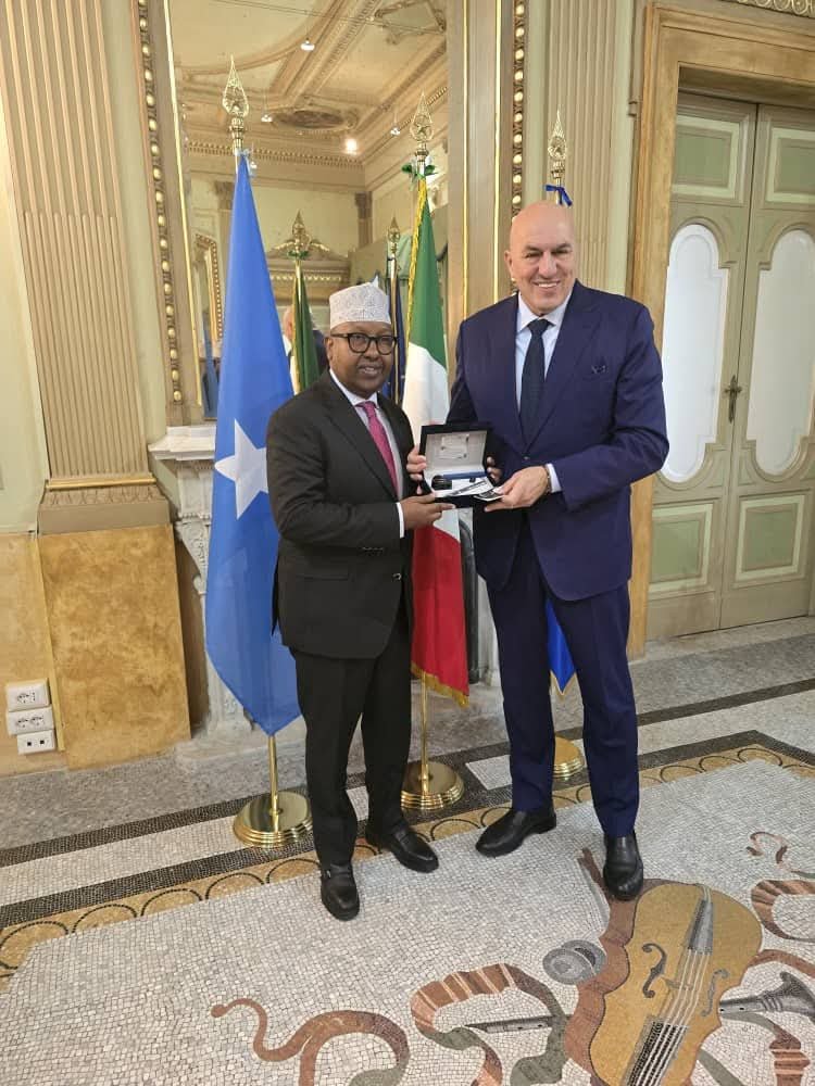 Wasiirka Gaashaandhigga XFS, Mudane Axmed Macallin Fiqi, oo booqasho rasmi ah ku jooga dalka Talyaaniga, ayaa magaalada Rome kula kulmay dhiggiisa Talyaaniga, Mudane Guido Crosetto.