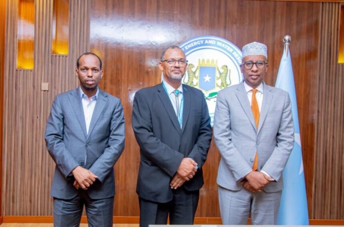 Wasiirka Tamarta iyo Kheyraadka Biyaha Xukuumadda Federaalka Soomaaliya (XFS), Mudane Cabdillahi Bidhan Warsame, ayaa xafiiskiisa ku qaabilay Agaasimaha cusub ee Hay’adda WFP u qaabilsan Soomaliya mudane Hameed Nuru.