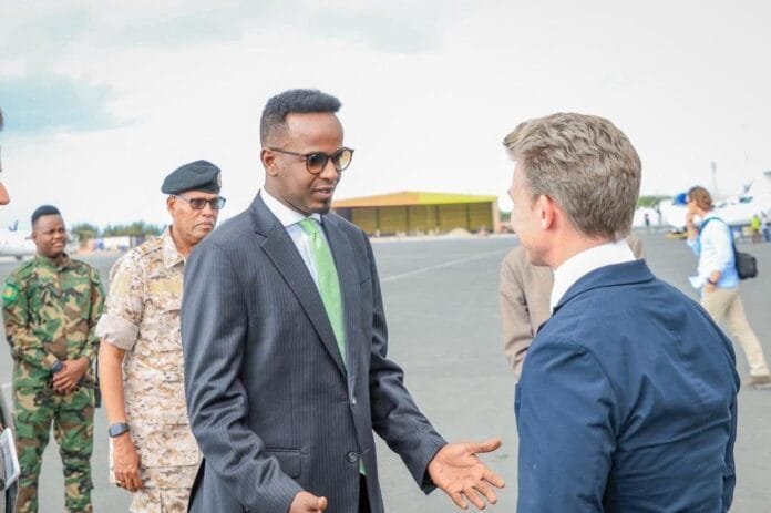Wasiiru Dowlaha Wasaaradda Gaashaandhigga, Mudane Cumar Cali Cabdi, ayaa maanta kusoo dhaweeyay garoonka diyaaradaha Aadan Cadde International Airport, Wasiirka Gaashaandhigga Boqortooyada Sweden, Mudane Pål Jonson iyo wafdi uu hoggaaminayo, kuwaas oo booqasho rasmi ah ku yimid magaalada Muqdisho.